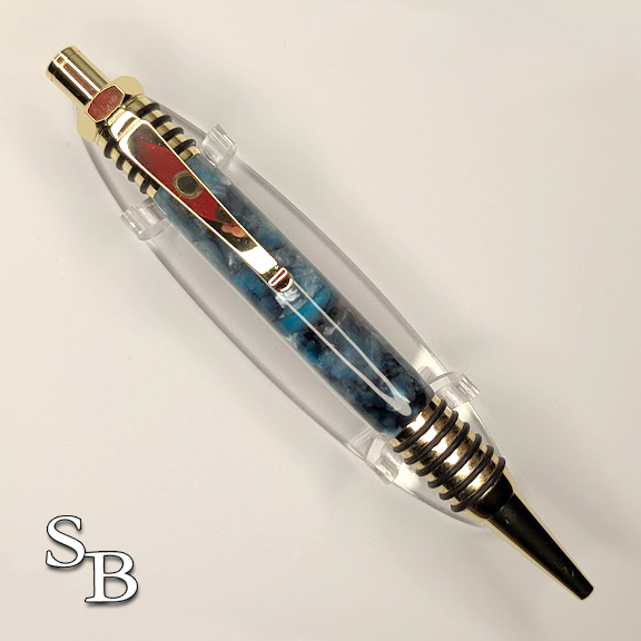 Made with a reflective blue acrylic.