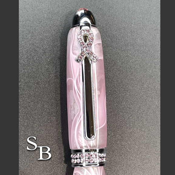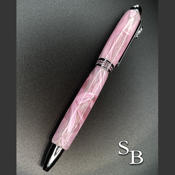 Made with pink and white acrylic swirl with chrome metal.