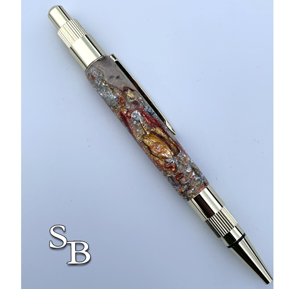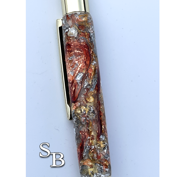 Made with Gold, Copper, Silver flake and reclaimed Grape Vine wood in acrylic with Gold metal hardware.